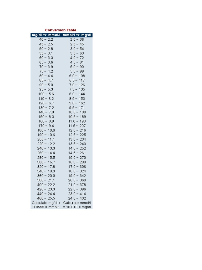 Mmol L To Mg Dl Conversion Share Fudiabetes